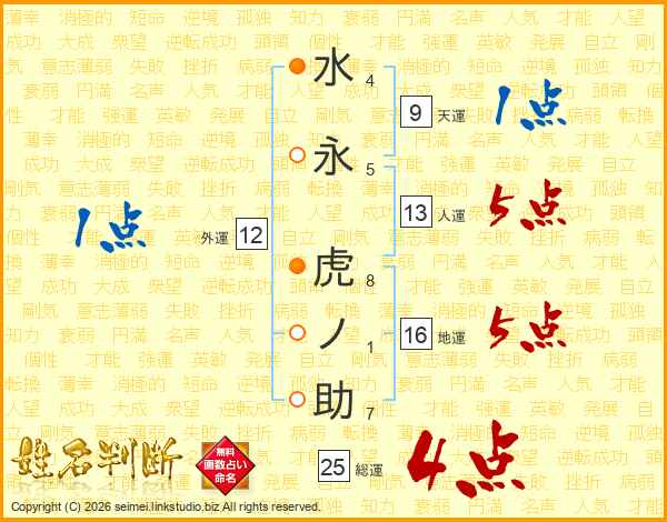 水永虎ノ助さんの総運は25画の4点!