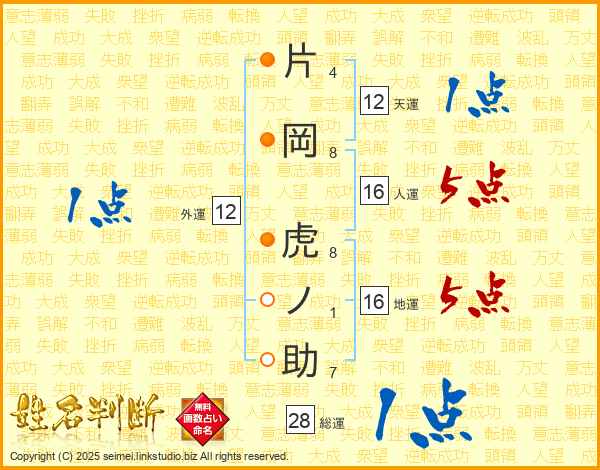 片岡虎ノ助さんの総運は28画の1点!
