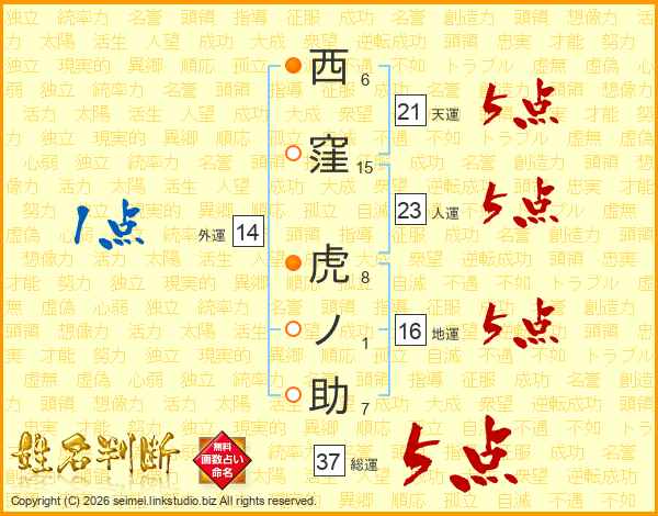 西窪虎ノ助さんの総運は37画の5点!