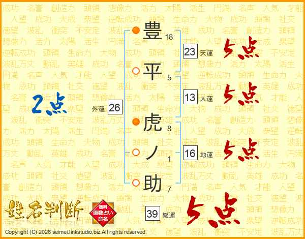 豊平虎ノ助さんの総運は39画の5点!