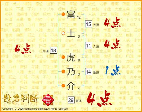 富士虎乃介さんの総運は29画の4点!
