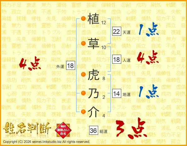 植草虎乃介さんの総運は36画の3点!