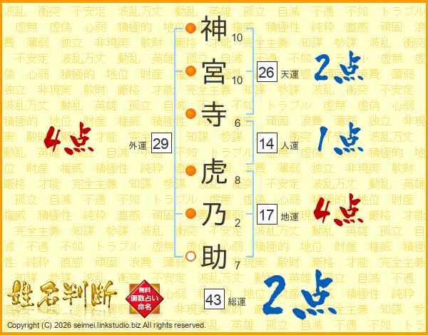 神宮寺虎乃助さんの外運は29画の4点!