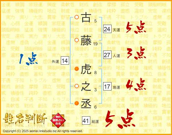 古(5画)藤(19画) 虎(8画)之(3画)丞(6画)