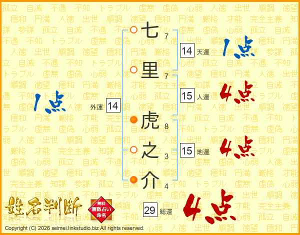 七里虎之介さんの総運は29画の4点!