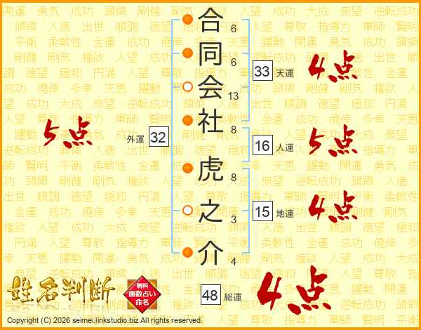 合同会社虎之介さんの天運は33画の4点!