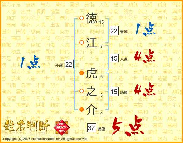 徳江虎之介さんの総運は37画の5点!
