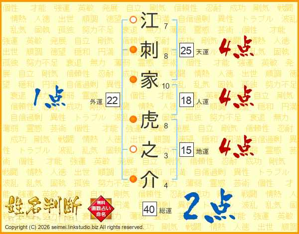 江刺家虎之介さんの総運は40画の2点!