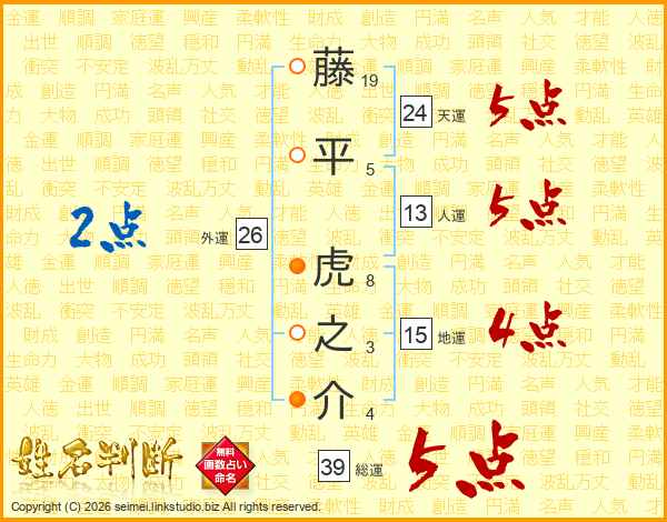 藤平虎之介さんの総運は39画の5点!