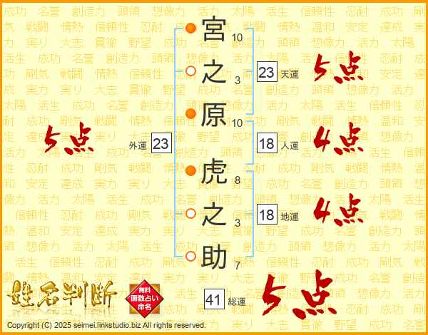 宮之原虎之助さんの外運は23画の5点!
