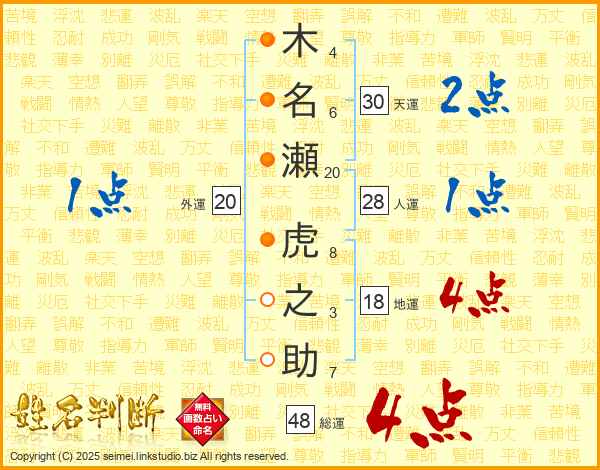 木名瀬虎之助さんの天運は30画の2点!