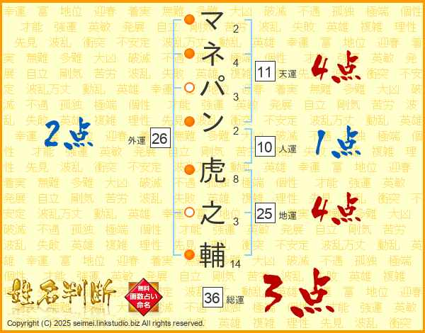 マネパン虎之輔さんの地運は25画の4点!