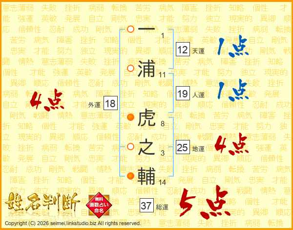 一浦虎之輔さんの総運は37画の5点!
