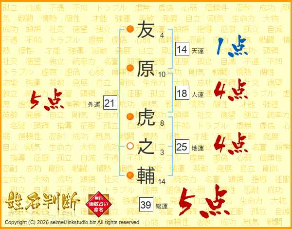 友(4画)原(10画) 虎(8画)之(3画)輔(14画)
