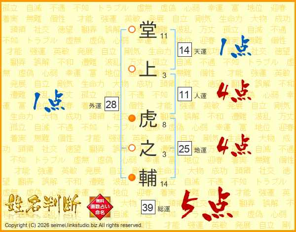 堂上虎之輔さんの総運は39画の5点!