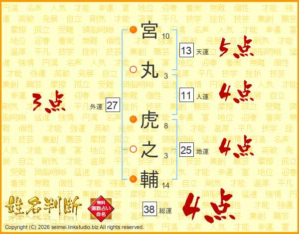 宮丸虎之輔さんの総運は38画の4点!