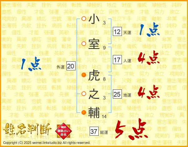 小(3画)室(9画) 虎(8画)之(3画)輔(14画)