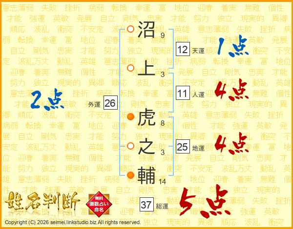 沼上虎之輔さんの外運は26画の2点!