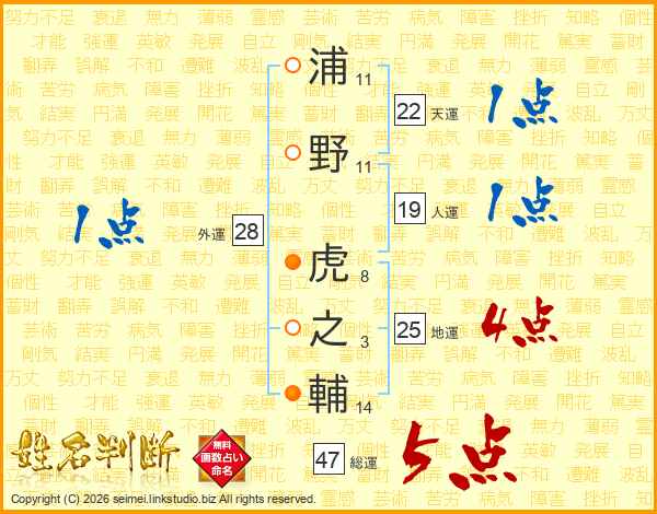 浦野虎之輔さんの総運は47画の5点!