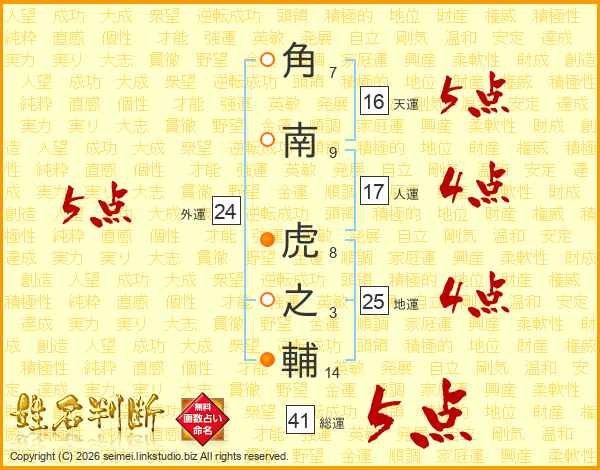 角南虎之輔さんの総運は41画の5点!