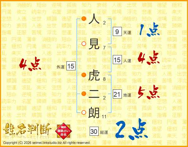 人見虎二朗さんの総運は30画の2点!