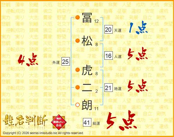 冨松虎二朗さんの総運は41画の5点!