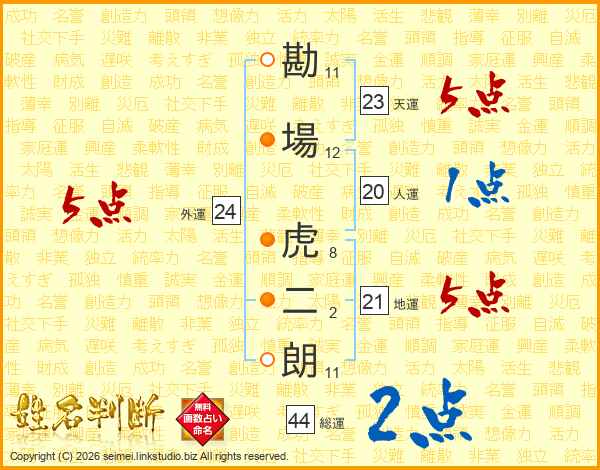 勘場虎二朗さんの総運は44画の2点!