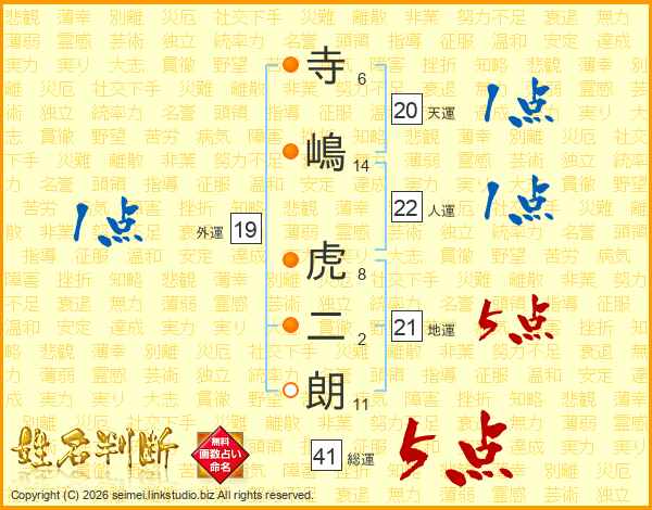 寺嶋虎二朗さんの総運は41画の5点!