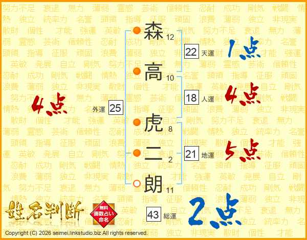 森高虎二朗さんの総運は43画の2点!