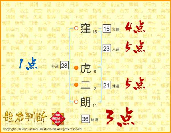 窪虎二朗さんの総運は36画の3点!