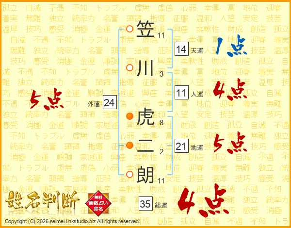 笠川虎二朗さんの総運は35画の4点!