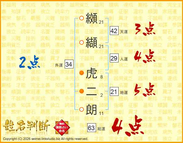 纐纈虎二朗さんの総運は63画の4点!