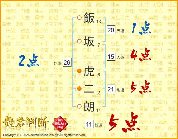 飯坂虎二朗さんの総運は41画の5点!