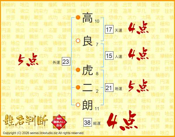 高良虎二朗さんの総運は38画の4点!