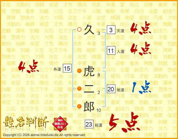 久虎二郎さんの総運は23画の5点!