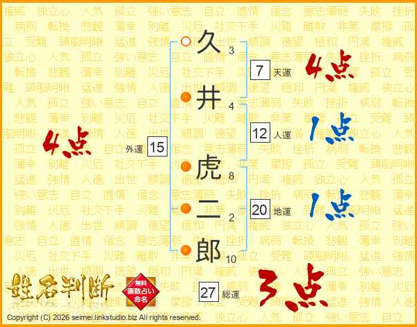 久井虎二郎さんの総運は27画の3点!