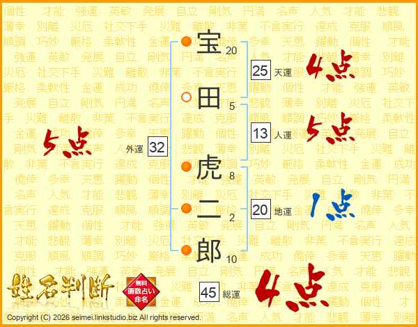 宝田虎二郎さんの総運は45画の4点!