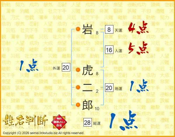 岩虎二郎さんの総運は28画の1点!