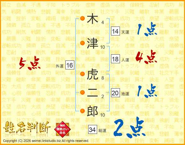 木津虎二郎さんの総運は34画の2点!