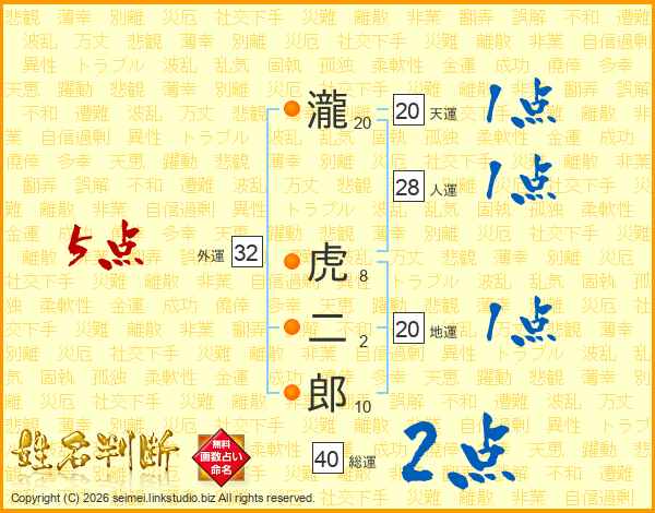 瀧虎二郎さんの外運は32画の5点!