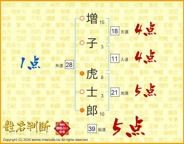 増子虎士郎さんの総運は39画の5点!