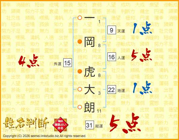 一岡虎大朗さんの総運は31画の5点!