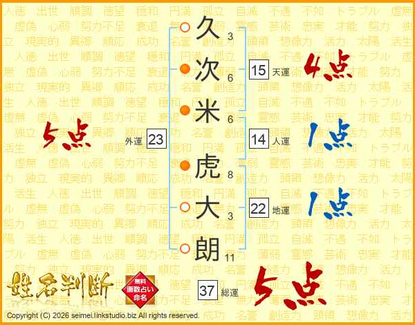 久次米虎大朗さんの総運は37画の5点!