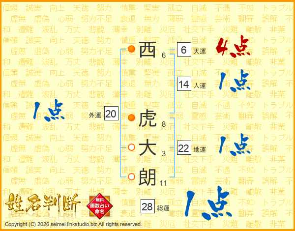 西虎大朗さんの総運は28画の1点!