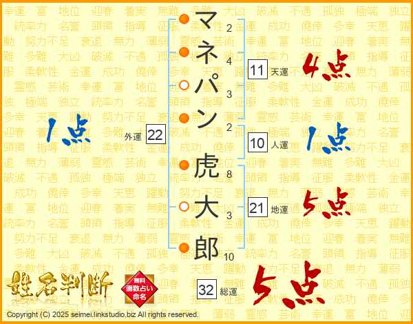 マネパン虎大郎さんの地運は21画の5点!