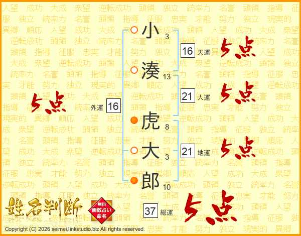 小湊虎大郎さんの総運は37画の5点!