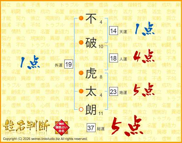 不破虎太朗さんの総運は37画の5点!