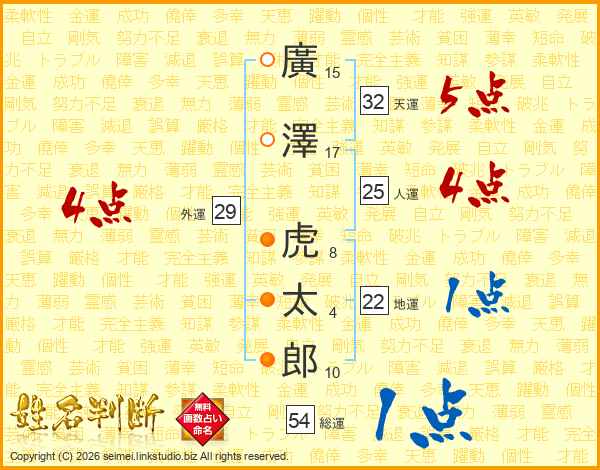 廣澤虎太郎さんの天運は32画の5点!