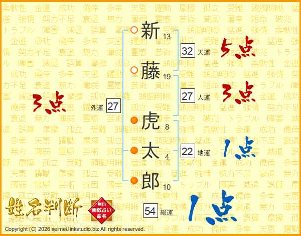 新藤虎太郎さんの天運は32画の5点!