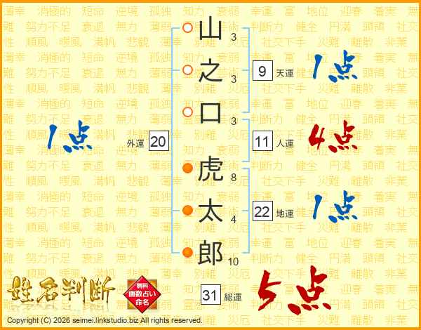山之口虎太郎さんの総運は31画の5点!